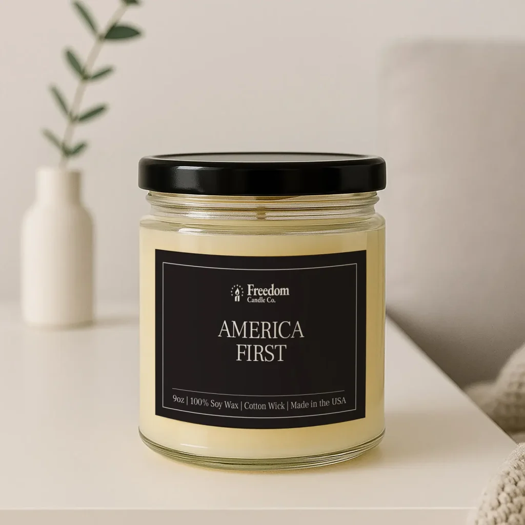 A candle that honors love of country above all else. America First reflects loyalty, pride, and the protection of home. Poured in a clear glass jar and finished with our signature label, this candle is a tribute to unwavering patriotism.
